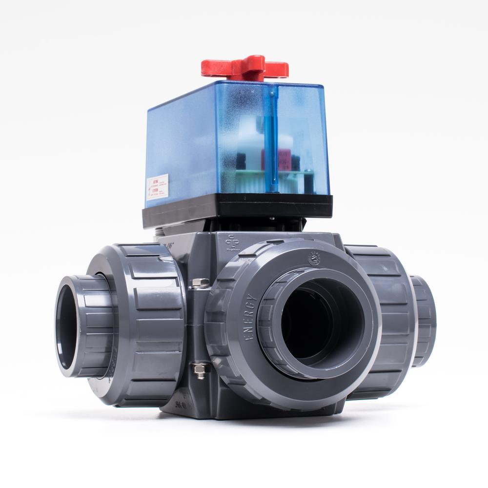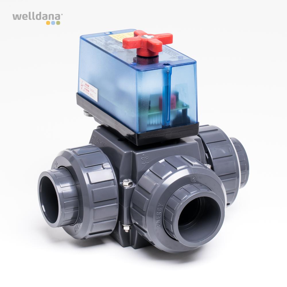 Welldana® 3-vägs motorventil med tåliga grå PVC-beslag.