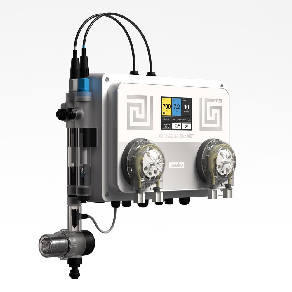 För fullständig bekvämlighet möjliggör ASIN AQUA Salt NET onlineövervakning och styrning direkt från din smartphone via Aseko Live-appen eller från vilken dator som helst via webbapplikationen aseko.cloud, vilket ger dig fullständig kontroll över din pool när som helst och var som helst.