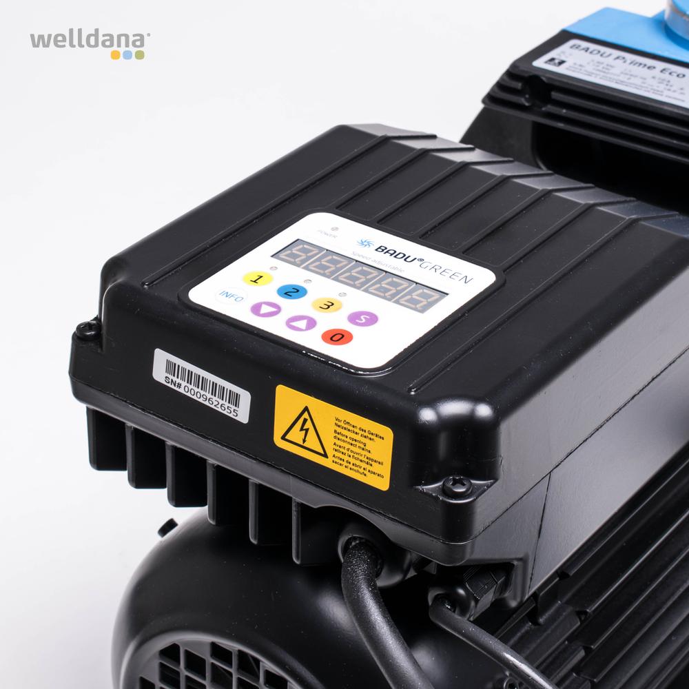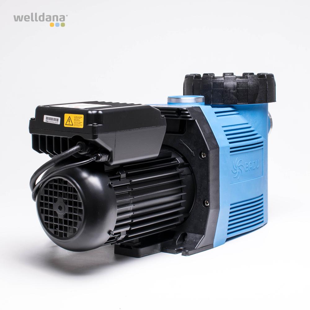 Badu® 90 VS är en tystgående frekvensstyrd kvalitetspump från Speck med patenterad permanent magnetmotor för bästa möjliga driftskostnader och vattenkvalitet. Levereras med ett kraftigt PP-förfilter, lätt avtagbart transparent lock, kopplingssats och verktyg till låsmuttern.