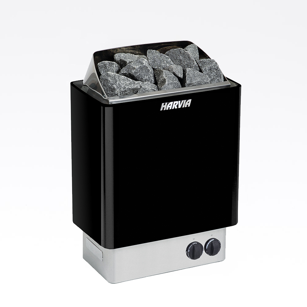 Harvia Vega Pro är ett elegant och effektivt bastuaggregat med beklädnad i rostfritt stål, för montering på bastugolvet. Denna modell