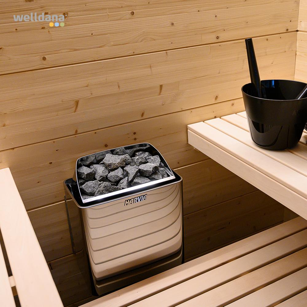 Welldana®-S är ett smart litet traditionellt bastuaggregat för upphängning på väggen. Konstruktionen och stenkapaciteten gör det ytterst effektivt utan att beklädnaden blir varm. Det är monterat med kontrollpanel för timer och temperatur, inbyggd med termometer och överhettningssäkring.