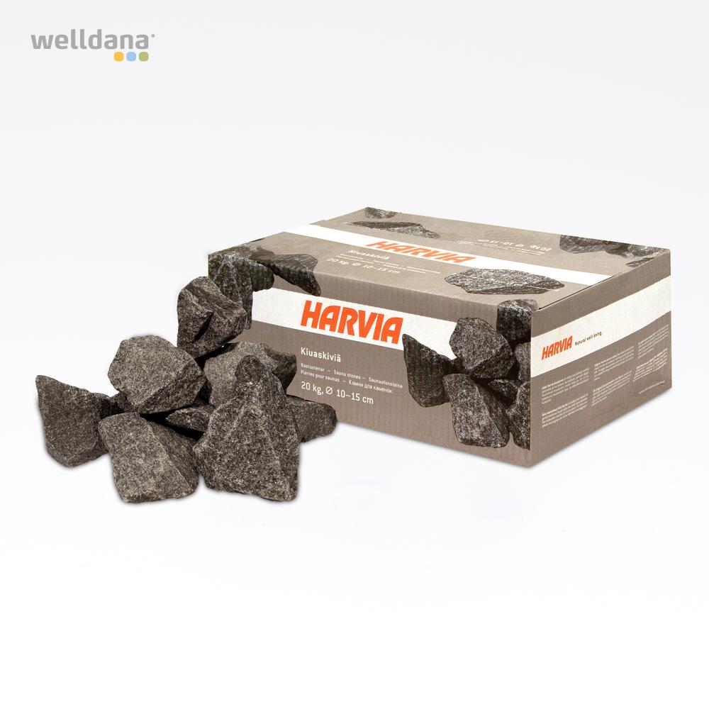 Harvia original finska bastustenar är tillverkade av bästa lavasten och har riktigt vassa och oregelbundna kanter som tar upp värmen, håller kvar den länge och avger den på ett effektivt och varsamt sätt. Lavasten gnistrar och spricker vid den höga värmen, så det är viktigt att efterfylla/byta ut och packa om stenen med jämna mellanrum efter användning och behov, så att luften kan strömma igenom och bastun fungerar optimalt. 10–20 mm bastustenar passar för alla medelstora och stora privata och offentliga elektriska och vedeldade bastuaggregat.