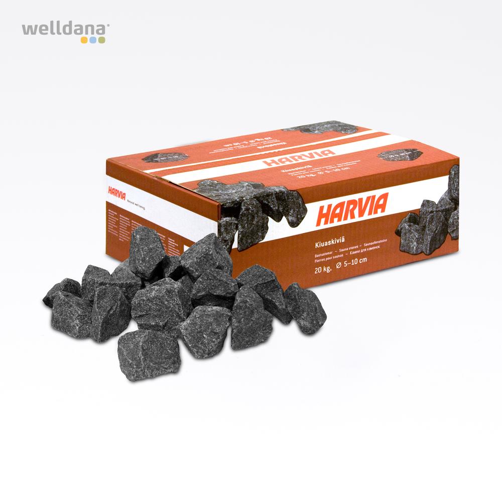 Harvia original finska bastustenar är tillverkade av bästa lavasten och har riktigt vassa och oregelbundna kanter som tar upp värmen, håller kvar den länge och avger den på ett effektivt och varsamt sätt. Lavasten gnistrar och spricker vid den höga värmen, så det är viktigt att efterfylla/byta ut och packa om stenen med jämna mellanrum efter användning och behov, så att luften kan strömma igenom och bastun fungerar optimalt. 5–10 mm bastusten passar till alla väggmodeller och mindre golvbastuaggregat.